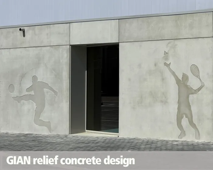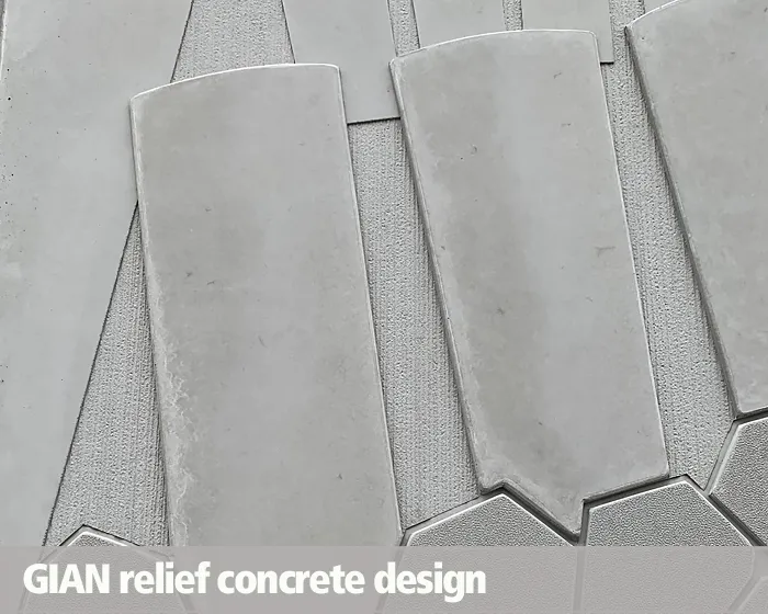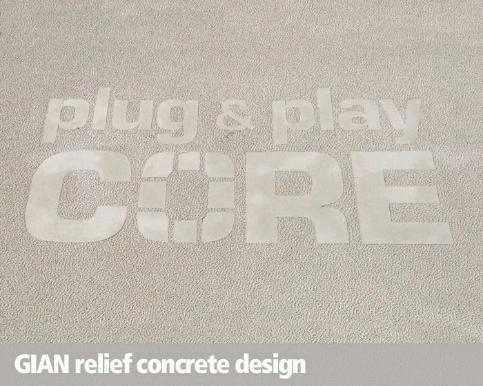 The GIAN 100 is a smooth texture mat with a thickness of 2, 3, or 5 mm, featuring a special top layer that provides the concrete with a visually smooth and nearly pore-free surface. Additionally, other GIAN structural mats can be used to add extra accents to the concrete. Numerous combinations are possible.