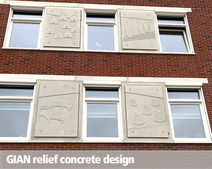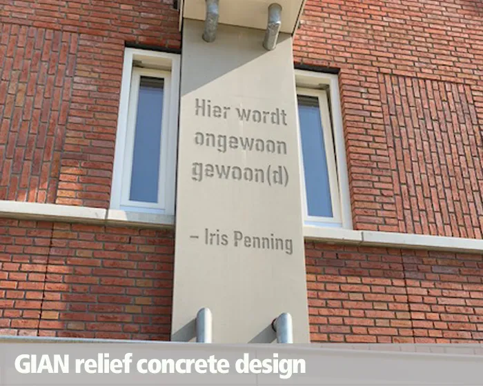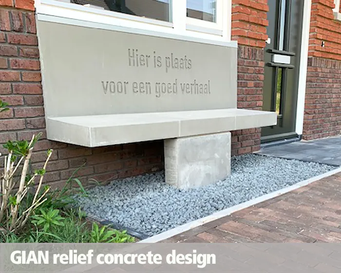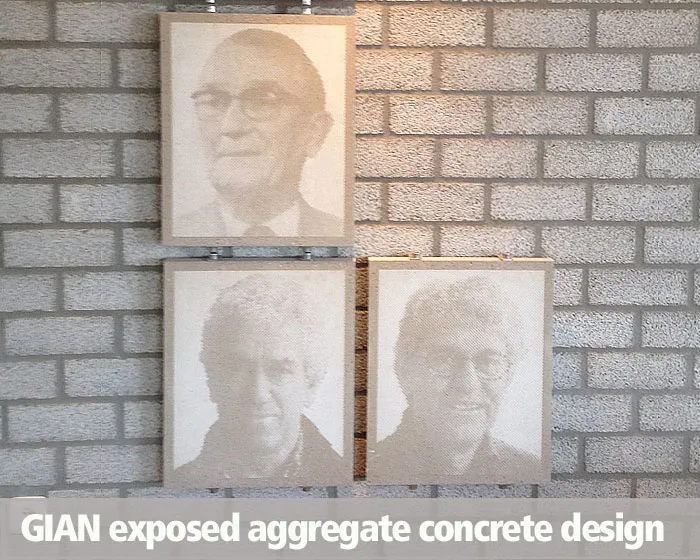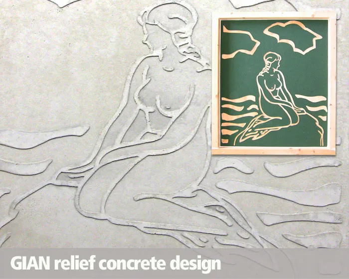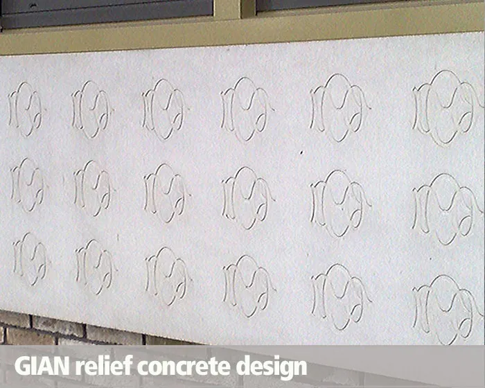 GIAN Concrete Art is a novel technique for creating symbols, numbers, letters, imaginative designs, and even images in concrete.