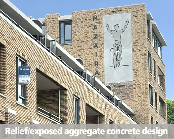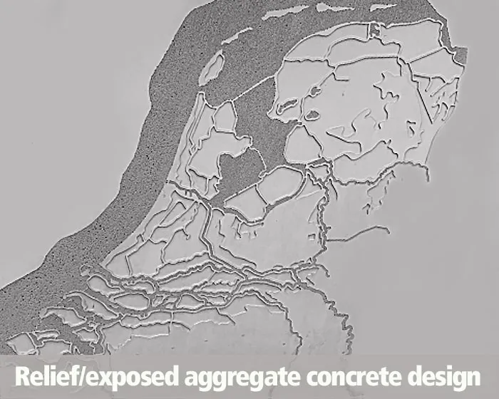 Using cement-retarding paper, a design in the form of an image or text is incorporated into the concrete. The design freedom with cement-retarding paper is extensive; even small details in photos become visible in the concrete.